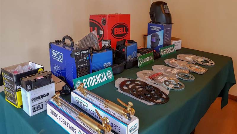 Cabe señalar que entre las especies recuperadas se encuentran una batería de moto, un juego de correa para motos, 17 catalinas de diferentes medidas, tres máquinas de soldar marca Weltec, una máscara para soldar Artery, dos sopletes Weltec y ocho pares de zapatos de seguridad.