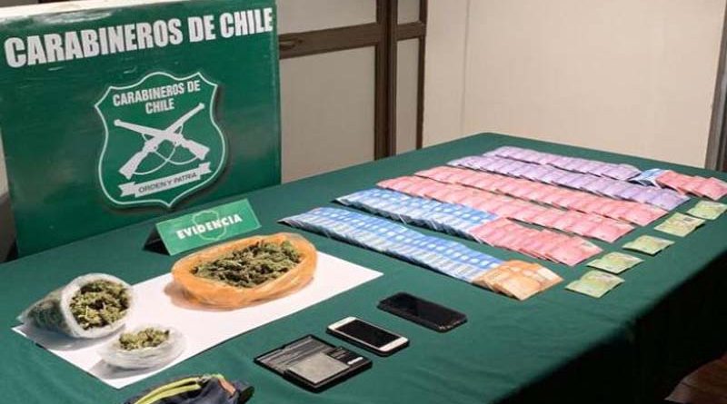 En total, se decomisaron tres bolsas con más de 1.800 dosis de marihuana elaborada, además de otros elementos asociados al ilícito como dinero en efectivo y una balanza digital.
