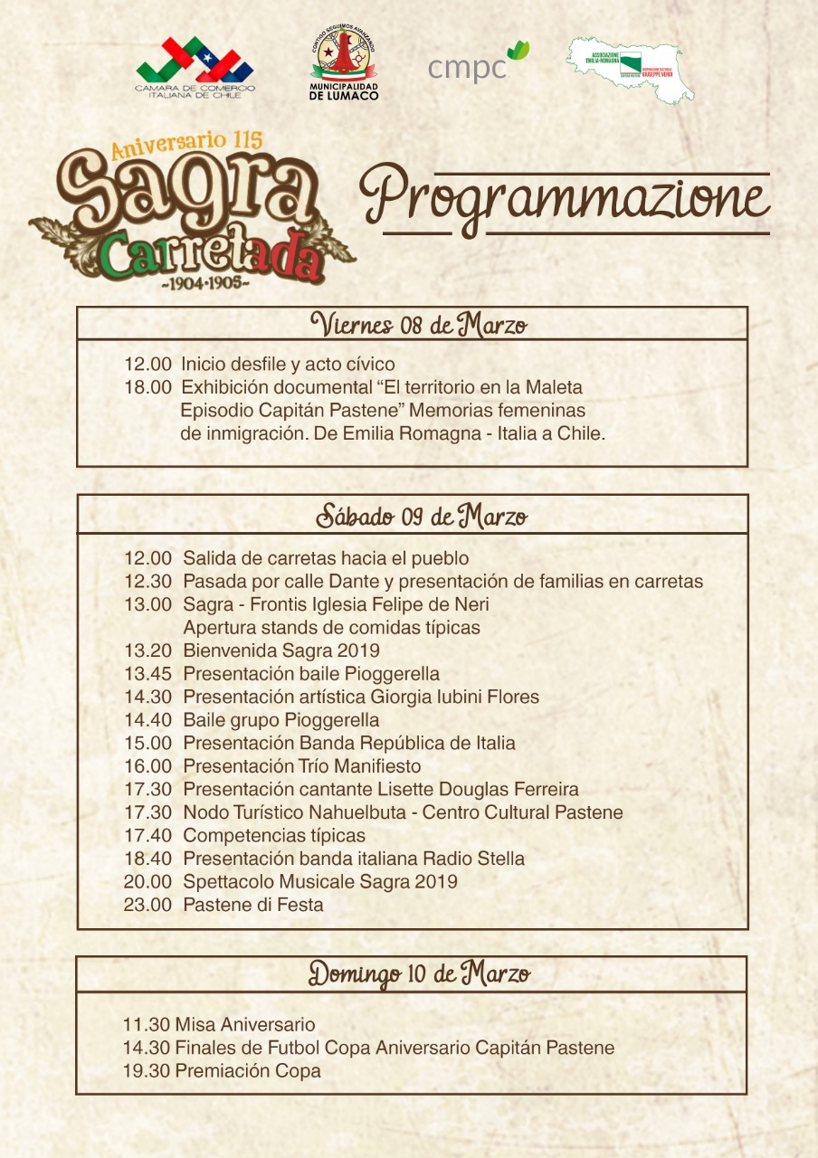 Todos invitados a la tradicional “Sagra” en Capitán Pastene