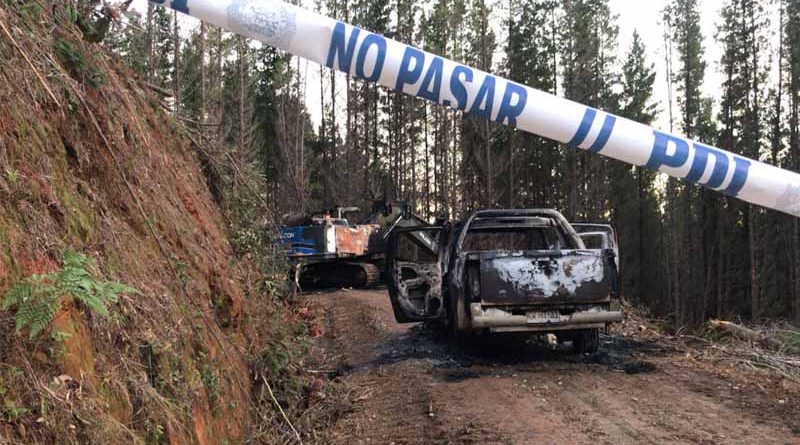 Cerca de tres sujetos encapuchados y armados, llegaron hasta el predio forestal en un difícil acceso, los que intimidaron al personal, quitándoles celulares y dejándolos totalmente incomunicados, luego prendieron fuego a la maquinaria y dependencias de Forestal Arauco.