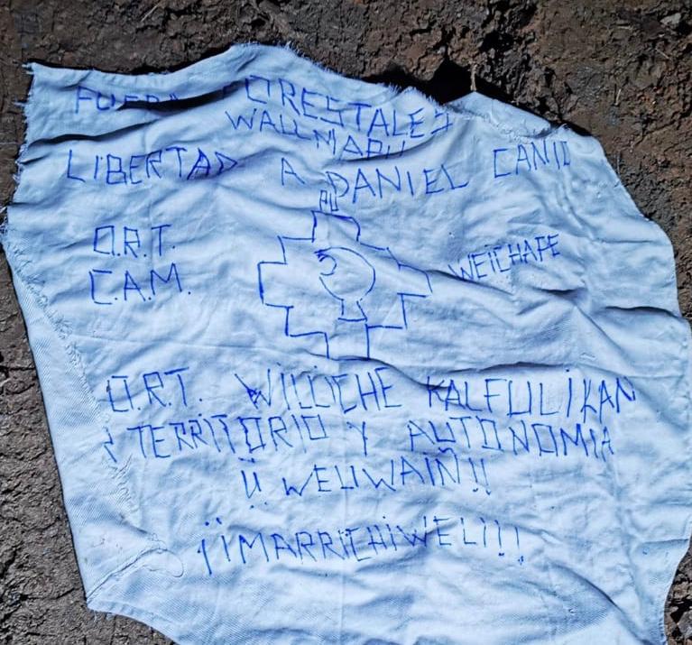Además se encontraron panfletos alusivos al conflicto étnico, adjudicándose el hecho a la Coordinadora Arauco Malleco (CAM).