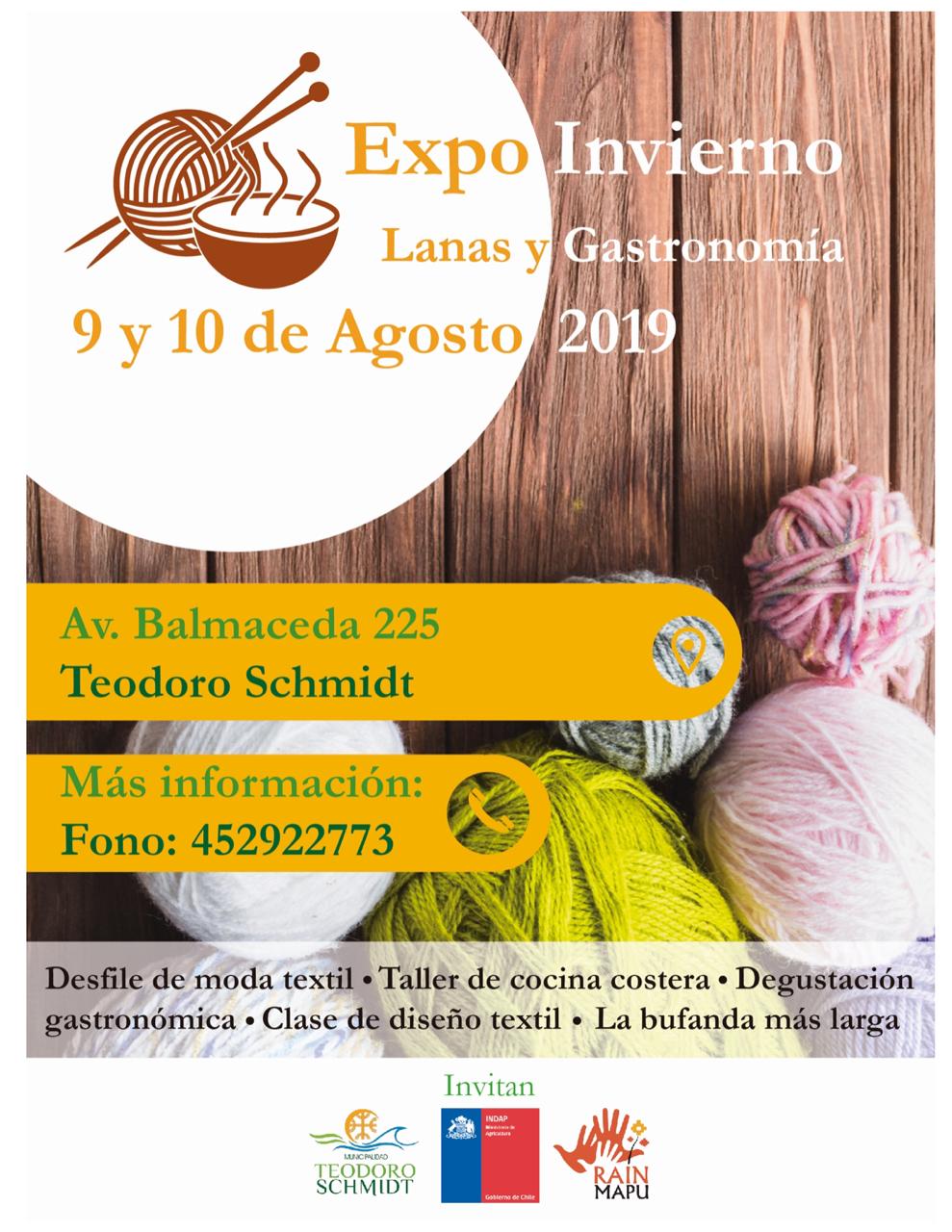 La “Expo Invierno, Lanas y Gastronomía 2019” pretende promover la comercialización de fibra textil y gastronomía, a través de un evento familiar con productos y servicios con identidad local que permita posicionar el turismo de la comuna de Teodoro Schmidt.