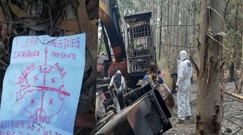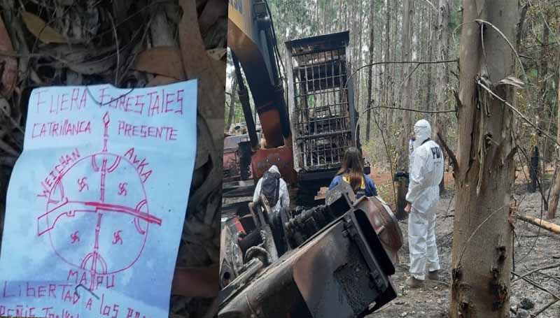 En el lugar además se encontró dos pancartas alusivas al conflicto mapuche.