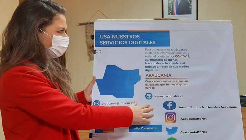 Con el fin de proteger a la ciudadanía, a los funcionarios y evitar el contagio de Coronavirus, la Seremi de Bienes Nacionales de La Araucanía, mantendrá sus oficinas cerradas para trámites presenciales, por lo que solo atenderá al público a través de sus medios digitales.