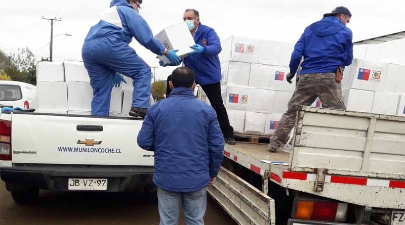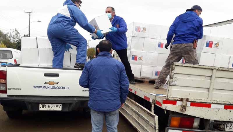 Durante los últimos días, personal municipal acompañados por el alcalde Ricardo Peña Riquelme, acudieron a las distintas viviendas de los sectores más vulnerables de Loncoche, a distribuir las cajas entregadas por el Gobierno y que permitirá a las familias contar con alimentos para enfrentar esta pandemia.
