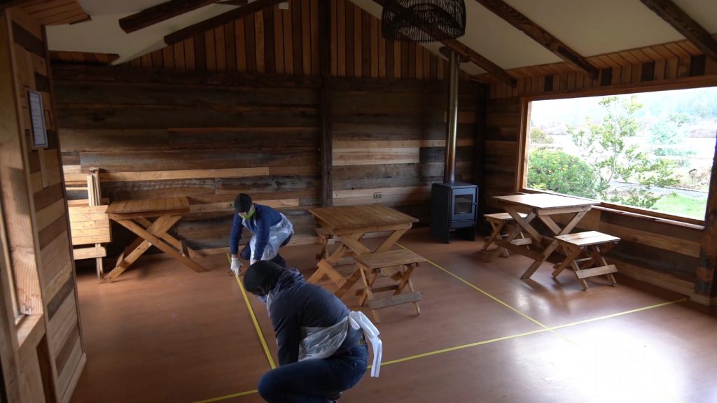 En Carahue, el piso de la cafetería del centro de Turismo Omilen Antü fue demarcado para fijar una separación de 1,5 mts entre mesas. En Turismo Lawenko, en la ruta entre Purén y Contulmo, la distancia es similar, pero “hemos separado las mesas con árboles, con plantas y flores que permiten este distanciamiento”, cuenta Iván Mella, propietario del recinto. Al igual que en todos los establecimientos asociados al turismo, se ha dispuesto de 2 personas por mesa. Previo al ingreso a los locales, cada visitante deberá ser controlado en su temperatura y sus manos deberán sanitizarse. Además, los accesos cuentan con pediluvios y la calidez de la bienvenida será a distancia prudente.