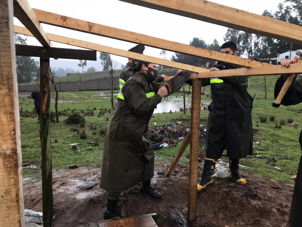 También, en las últimas horas se conoció el caso de una madre y su hijo que viven en precarias condiciones el sector Chomio de Padre Las Casas, quienes recibieron la ayuda de Carabineros de la 3a. Comisaría con martillo y serrucho en mano, para trabajar hasta que cayó la noche en mejorar las condiciones de habitabilidad de esta familia, particularmente los espacios más afectados por el clima adverso.