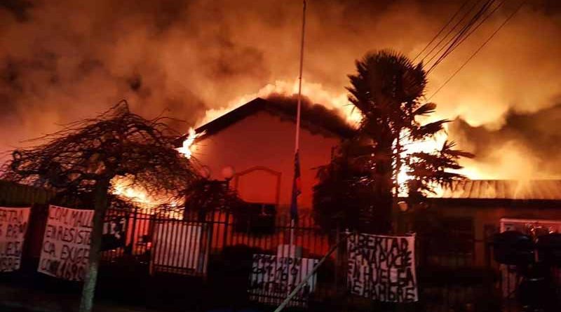 La municipalidad de Ercilla quedó destruida por la acción del fuego que además afectó a dos inmuebles, un bus y otras maquinarias, en tanto el municipio de Traiguén resultó con un 90% destruido luego que comuneros prendieran fuego y después huyeron del lugar, indicaron testigos.