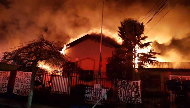 Destruidas por las llamas quedaron las municipalidades de Ercilla y Traiguén esta madrugada en La Araucanía.