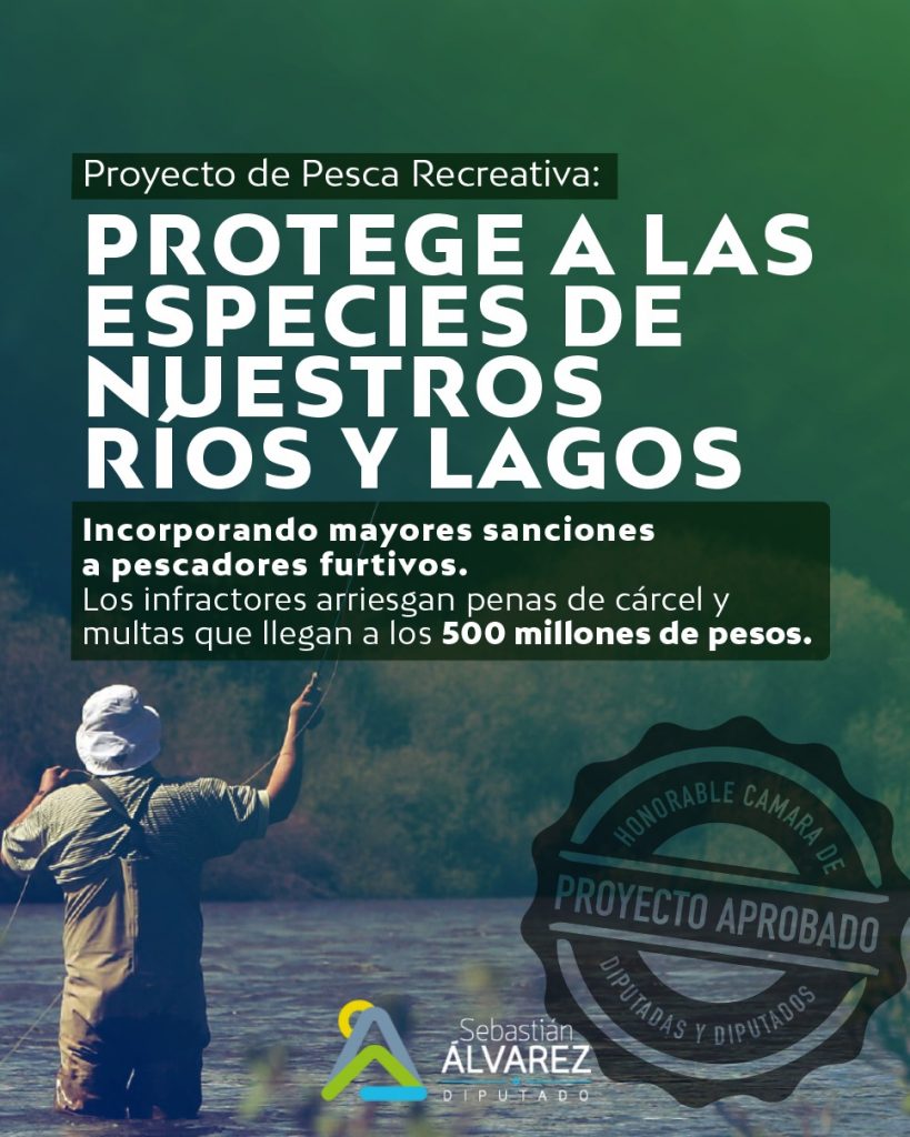 “Después de 2 años de trabajo en conjunto con todas las organizaciones de pesca recreativa de la región de la Araucanía y con el apoyo de todos los pescadores recreativos del sur de Chile, hemos sacado adelante este proyecto de ley que busca endurecer y tipificar como delito, aquellas personas que practican la pesca furtiva”, señaló Álvarez.
