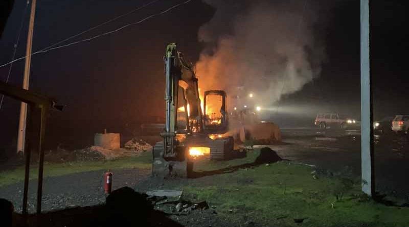 17 camiones y 3 retro excavadoras fue el resultado de este nuevo ataque incendiario en la región, Weichan Auka Mapu se adjudicó el ataque.