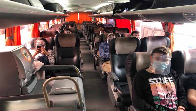 En abril pasado y, a pocos días de decretarse la pandemia, la empresa NarBus adoptó una medida inédita entre los buses de recorrido interprovincial, al restringir el uso de asientos en toda su flota, bloqueando la venta de la mitad de sus asientos, manteniendo con ello la distancia social entre sus pasajeros, distribuyendo al interior de las máquinas, además, alcohol gel y realizando controles de temperatura entre los usuarios.