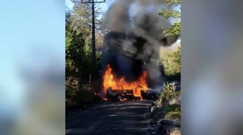 En la ruta que une Villarrica con Pucón, un vehículo ocupado en asalto de un supermercado fue incendiado.