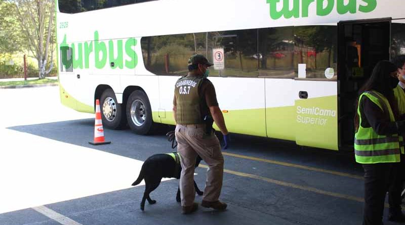 El procedimiento se registró en la comuna de Lautaro, cuando Carabineros del OS-7 con apoyo del perro policial adiestrado “Flawy”, fiscalizaron un bus de recorrido interurbano que viajaba desde Santiago a Puerto Montt.