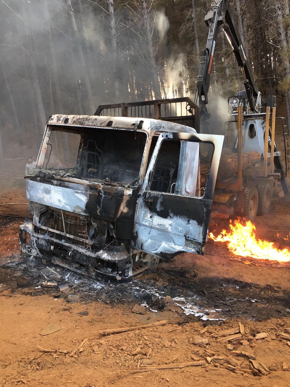 Un nuevo hecho de violencia rural, dejó un total de 5 camiones y 3 máquinas forestales destruidas.