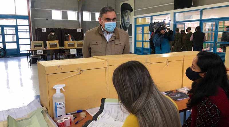 El intendente Víctor Manoli junto al Jefe Regional de las Fuerzas, general Marcelo Nuñez, recorrieron distintos locales de votación en Temuco y Padre Las Casas, para verificar el normal desarrollo de las elecciones que iniciaron este sábado 15 y se extenderá hasta este domingo 16 de mayo.