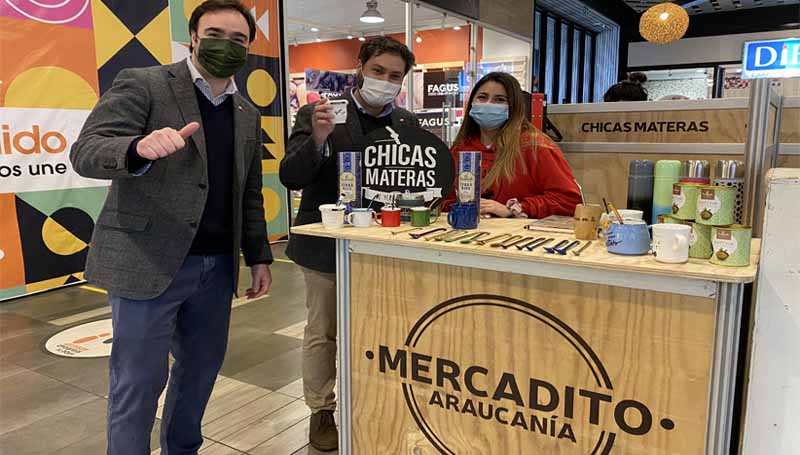 La actividad se realizó en el Mall Vivo de Temuco junto a emprendedores de la región, que conforman el Mercadito Araucanía, y que reúne a 32 emprendimientos impulsados por Sercotec.