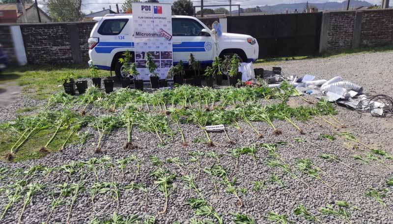 El subprefecto Romuald Gajardo, jefe de la Bicrim Lautaro precisó que el imputado tiene domicilio en la comunidad indígena Nilpe, y señaló que “se realizó una entrada y registro a un domicilio en un sector rural de la comuna de Galvarino, incautando cannabis sativa y 164 plantas de la misma especie, un sistema indoor, un arma a fogueo y 54 municiones de salva, por lo que fue detenido un hombre de 34 años quien registraba antecedentes por diversos delitos”.