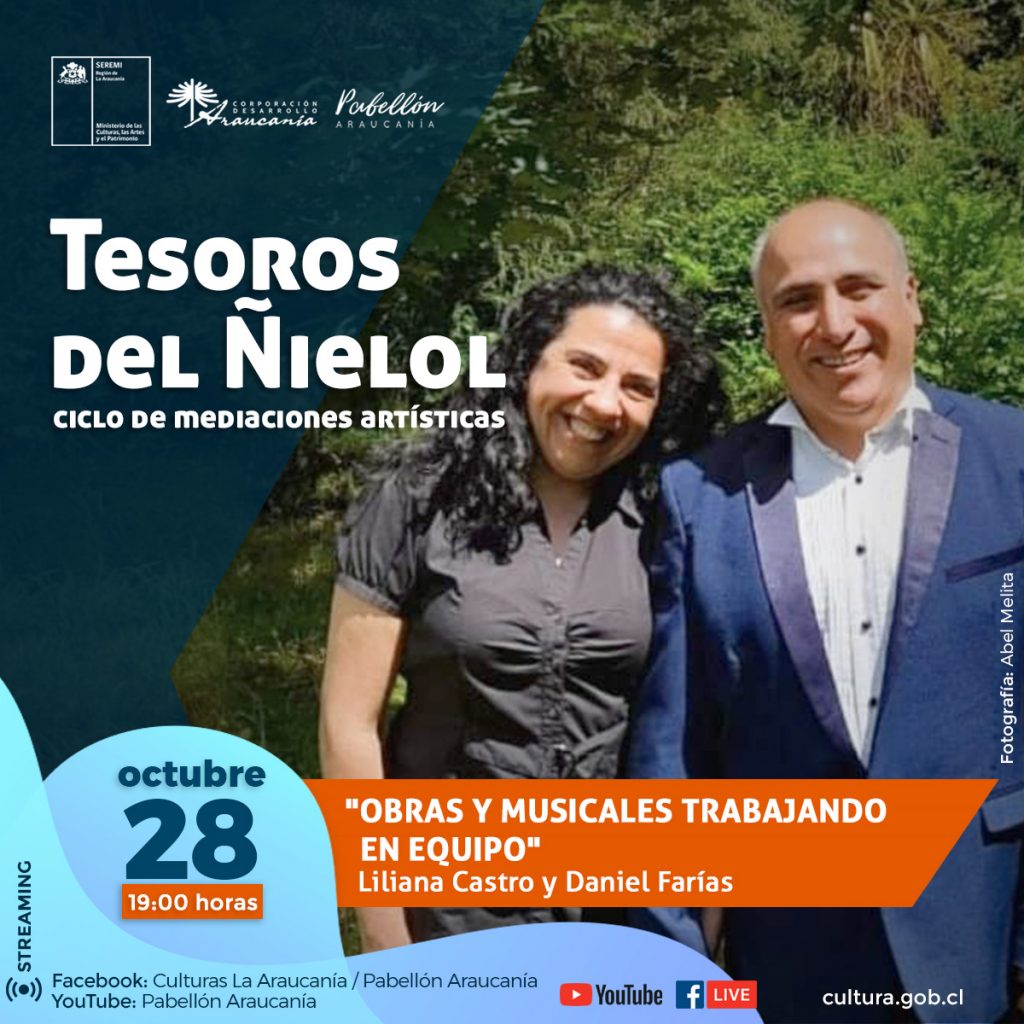 El seremi Enzo Cortesi invitó a ser parte de este nuevo capítulo de Tesoros del Ñielol. “Hacemos un llamado muy especial a la ciudadanía a seguir acompañando a los invitados que tenemos cada semana, en este recorrido por el arte regional. Esta vez contaremos con Daniel Farías y Liliana Castro, destacados exponentes de La Araucanía, que tienen una larga trayectoria vinculada al Teatro Municipal de Temuco, desde donde han impulsado diversas actividades y obras, además nos contarán sobre sus carreras y la labor que desarrollan en conjunto. Esperamos que se conecten a la transmisión este jueves”, dijo Cortesi.