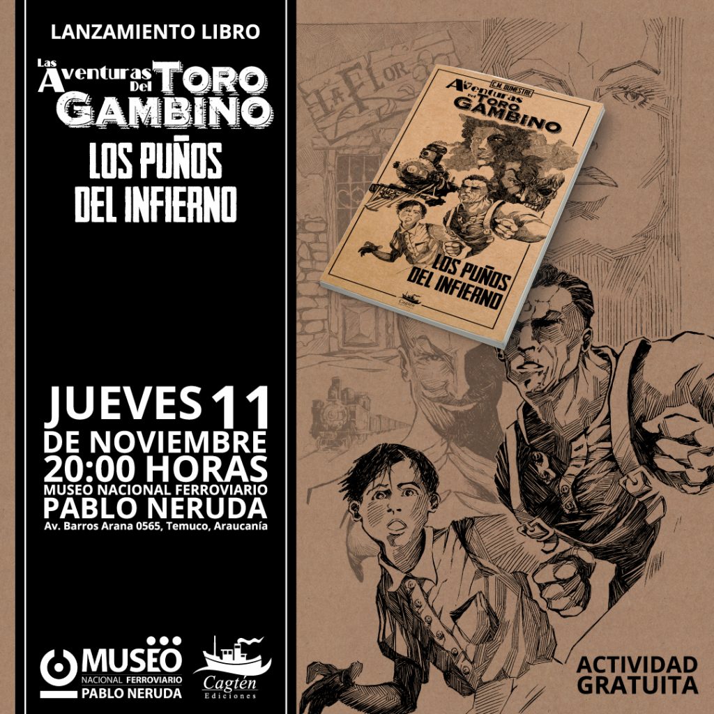 Cagtén Ediciones una de las editoriales más antiguas de la región, regresa el ecosistema literario, con la primera entrega de lo que será una trilogía. La obra del escritor C. M. Dumestre está ambientada en el norte salitrero del año 1930, convirtiéndose en un texto que logra una mezcla lúdica y atrayente entre el boxeo, las locomotoras y fantasmas. Su lanzamiento oficial será este jueves 11 de noviembre a las 20:00 horas. En el sector tornamesa del Museo Nacional Ferroviario Pablo Neruda de la ciudad de Temuco