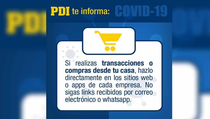 El comisario Axel Muñoz, jefe subrogante de la Bridec Temuco, agregó que “prefiera realizar sus compras a través de los sitios oficiales del comercio; utilice los medios de pago originales que ofrecen las tiendas; nunca acceda a un sitio a través de un enlace recibido por correo electrónico, mensaje de texto o mensajería instantánea. Si tiene dudas sobre la autenticidad de una oferta, tome contacto con el sitio oficial de la tienda antes de realizar la compra; asegúrese de la reputación de la tienda antes de comprar, busque en línea si posee denuncias o reclamos por parte de otros usuarios; y evite comprar por redes sociales, especialmente si no tiene garantías de que cumplirán con la entrega”.