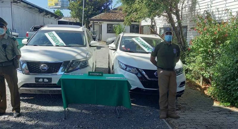 Los vehículos recuperados, una Nissan New Pathfinder (con patentes de fabricación artesanal) y una Nissan Qashqai, fueron sometidos a peritajes especializados de Carabineros del Sebv y, posteriormente, entregados a sus propietarios.