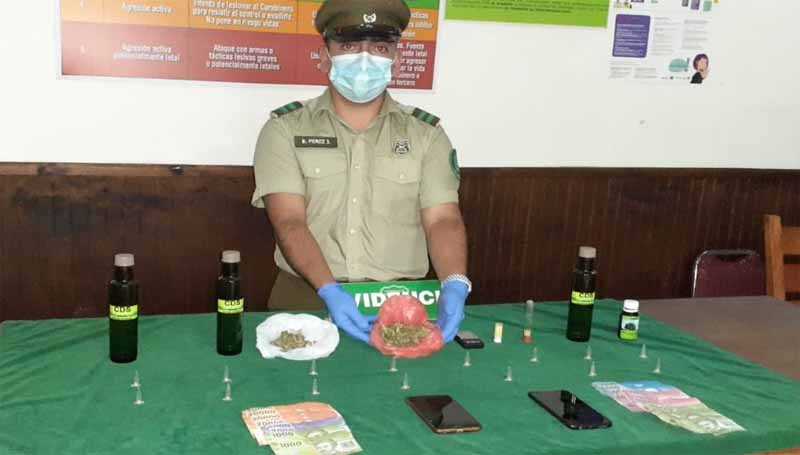 Además, en el procedimiento se incautó marihuana elaborada, tres envases con Dióxido de Cloro cuya tenencia está prohibida, y dinero en efectivo, entre otras especies.