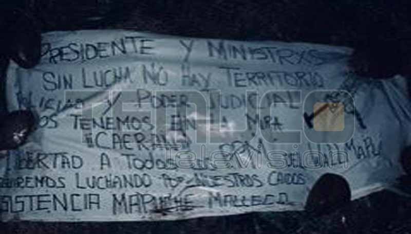Escrito encontrado en ataque: “Presidente y Ministrxs, sin lucha no hay territorio, Policías y Poder Judicial los tenemos en la mira, caerán”