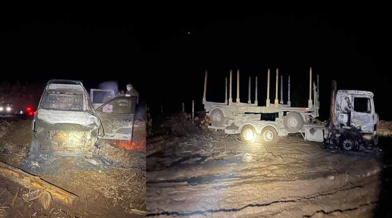 Un nuevo atentado incendiario en la Ruta entre La Paz y sector rural Molco, Loncoche, Región de La Araucanía, se registró en horas de la noche del pasado viernes, hecho donde resultaron dos camiones y una camioneta incendiadas por alrededor de 7 encapuchados armados.