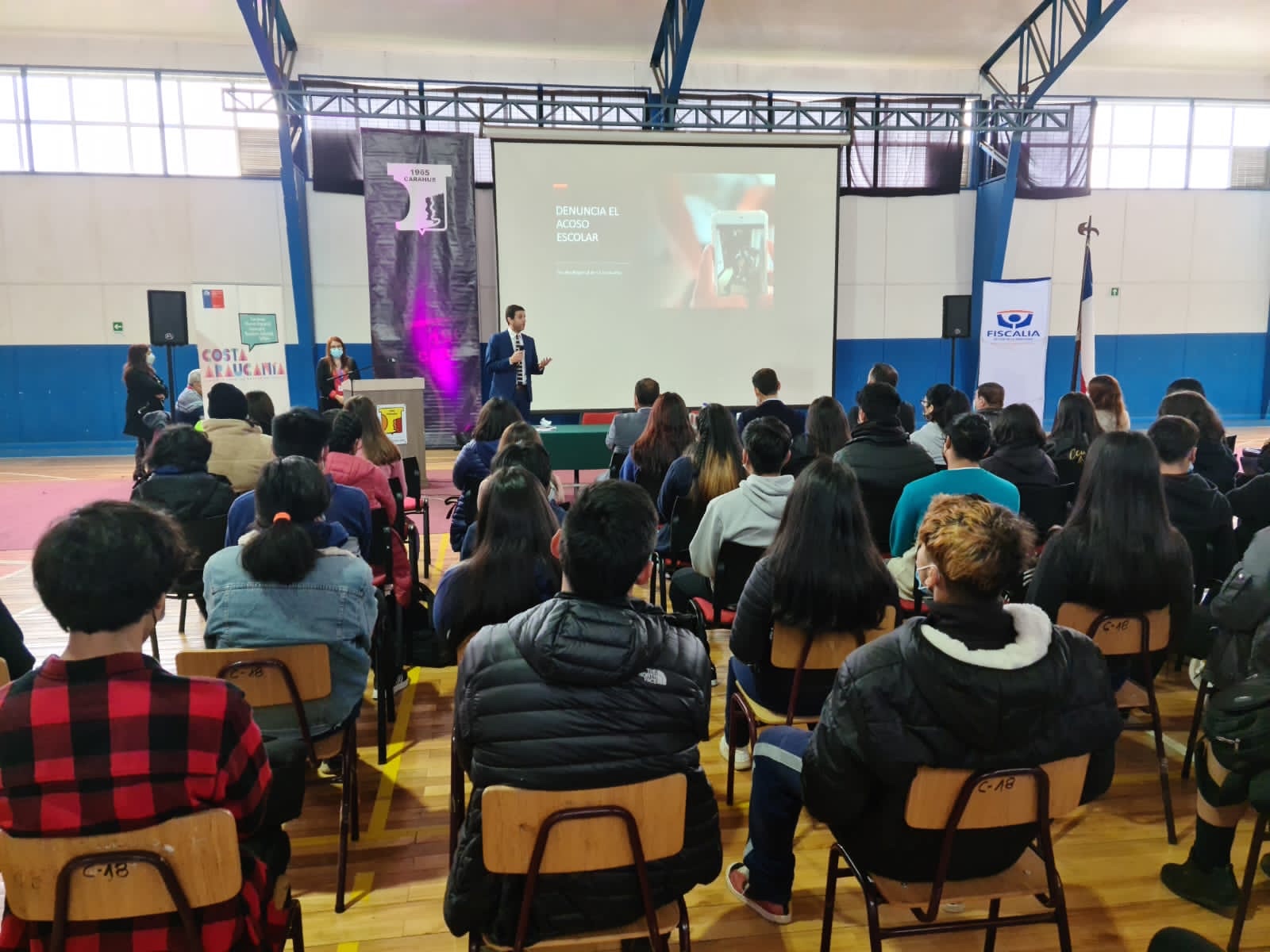 Con una charla en el Liceo Claudio Arrau de Carahue la Fiscalía Regional de La Araucanía relanzó esta semana la campaña “Denuncia el Acoso Escolar” con el fin de contribuir en la erradicación del bullying y la violencia al interior de los establecimientos educacionales en el retorno a las clases presenciales.