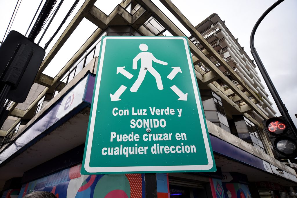 Adicionalmente, esta medida se reforzó con un enunciado que indica: “con luz verde y sonido puede cruzar en cualquier dirección’’ y también, se instalaron bocinas que indican que se puede avanzar en la fase peatonal.