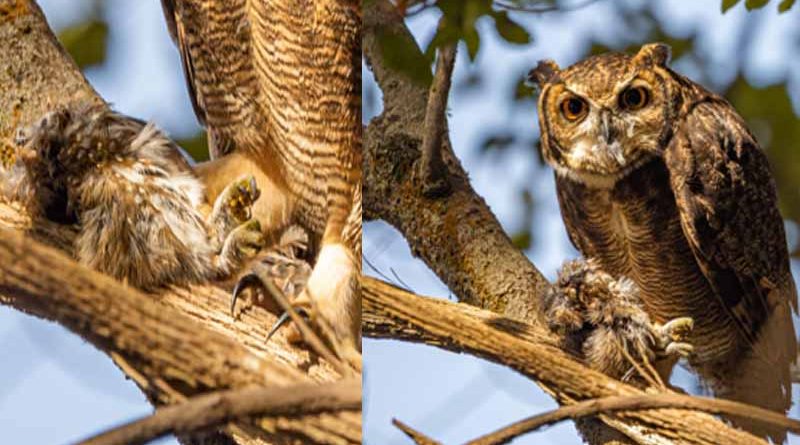 Acierto fotográfico: captan a búho tucúquere depredando a un chuncho en Parque Tricao