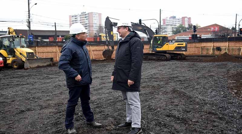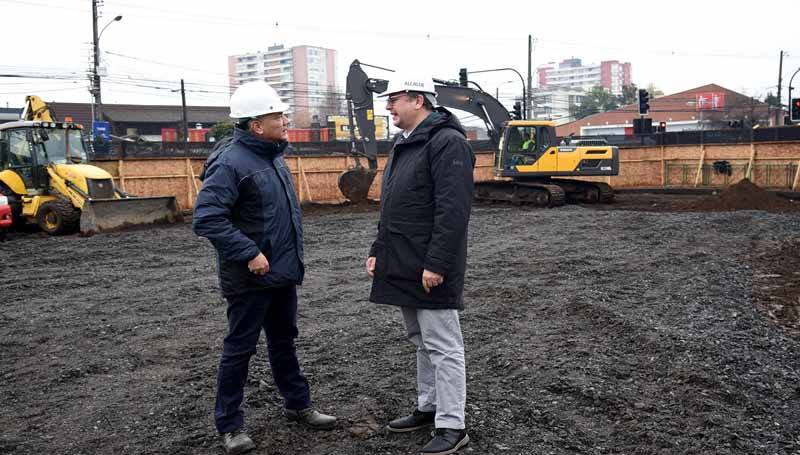 Alcalde Neira junto a seremi de Obras Públicas inspeccionan construcción de colector de aguas lluvias en Plaza Las Banderas