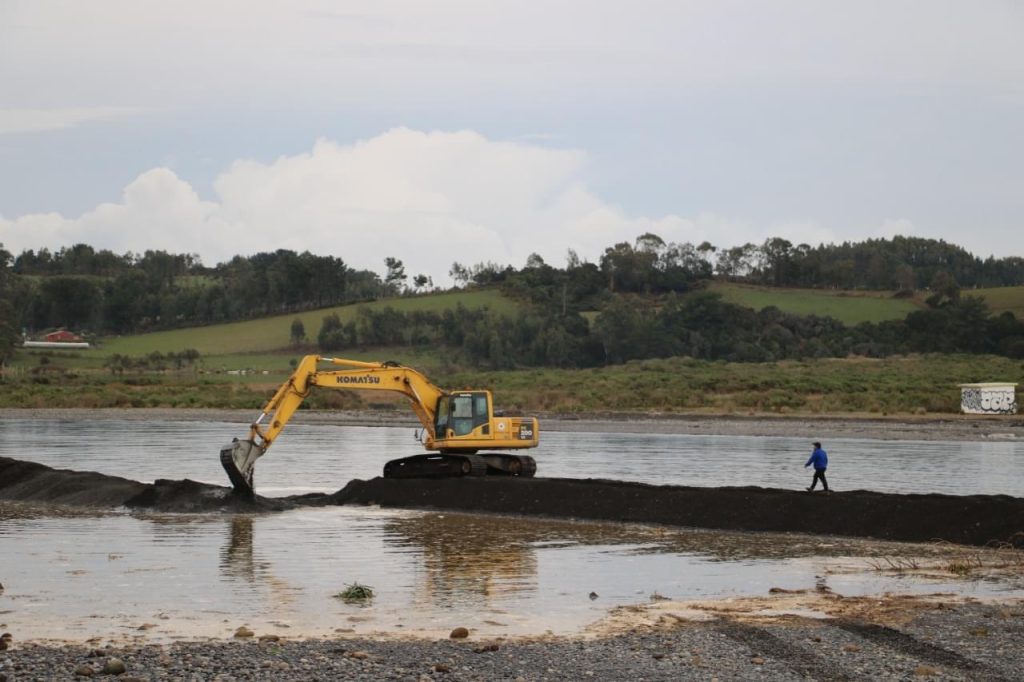 Durante las últimas horas, al trabajo desarrollado por el equipo del Municipio de Saavedra, se sumó una máquina de la dirección regional de Vialidad Araucanía, por lo que se espera que este 14 de julio, pasado el mediodía, las aguas del cauce lacustre desciendan al mar.