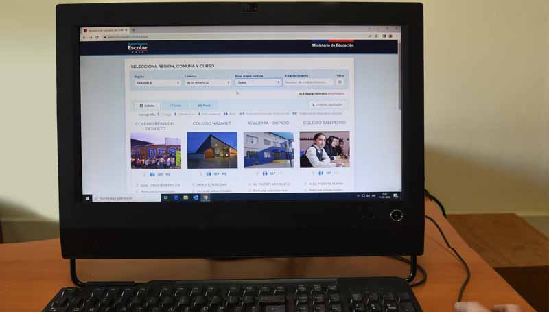 Los apoderados podrán filtrar los establecimientos educacionales por región; comuna; nivel al que postula; nombre del establecimiento, entre otras características.