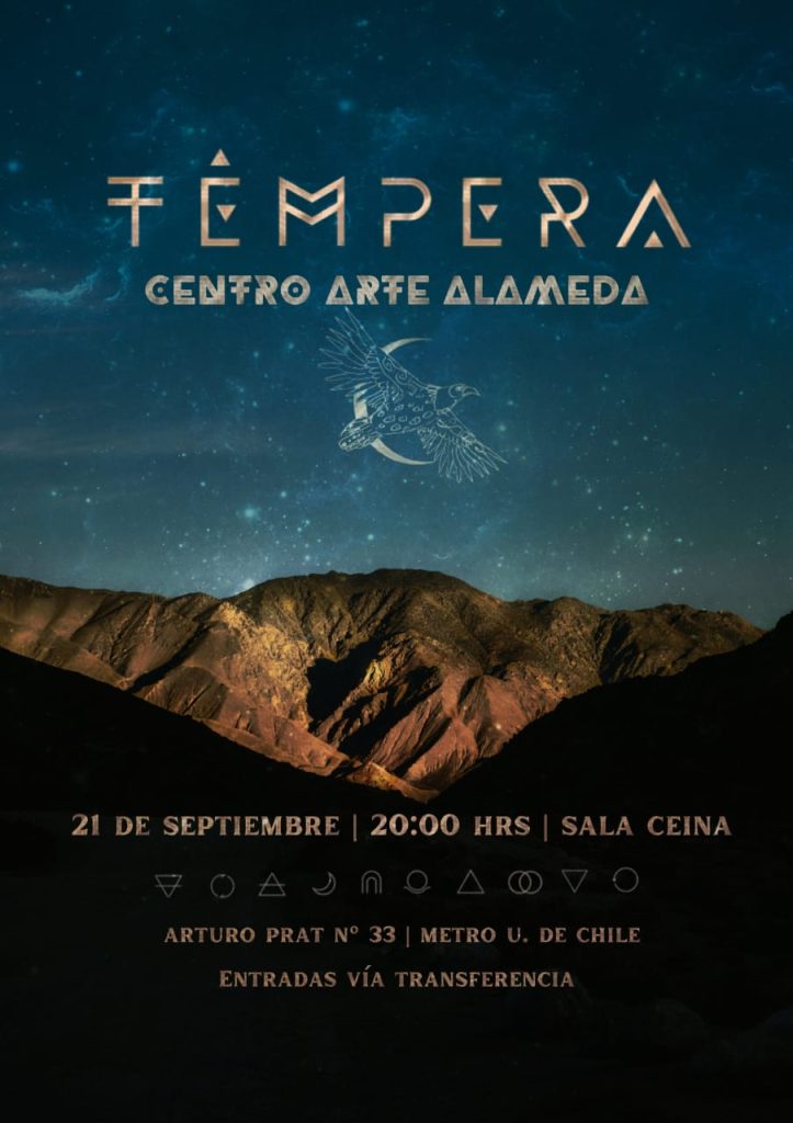 Este próximo 21 de septiembre, Témpera ofrecerá un gran concierto en el Centro Arte Alameda, actualmente ubicado en Arturo Prat #33, Metro Universidad de Chile. Las entradas ya están disponibles y van desde los $6000 en precio preventa.