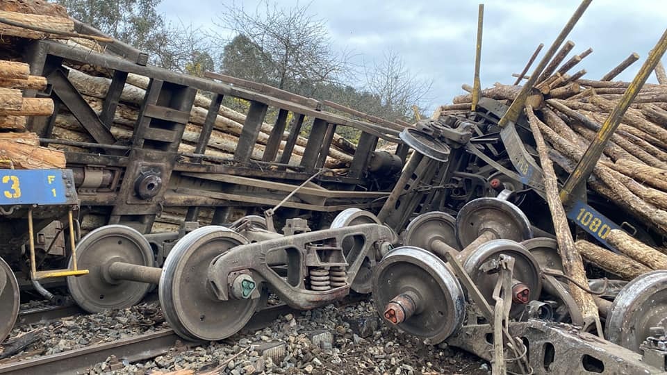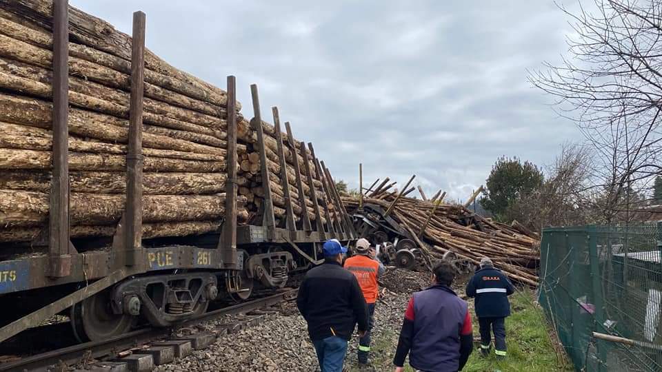 El hecho se registró en la comuna de Gorbea, donde un tren de carga de madera descarriló.