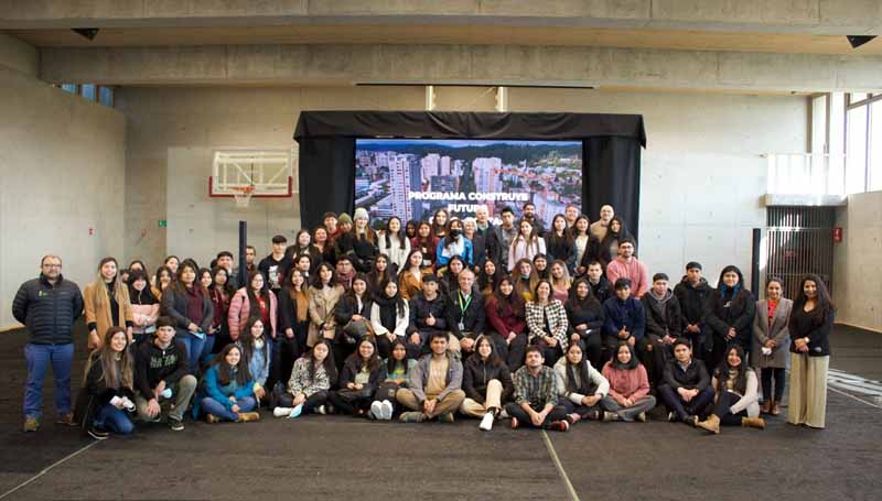 Este martes se realizó el primer encuentro de estudiantes de pregrado que participan del Programa Construye Futuro CMPC-Portas en la región del Biobío y la Araucanía, que consiste en la entrega de becas a alumnos para que puedan estudiar en la educación superior. En él participó Luis Felipe Gazitúa, presidente de Empresas CMPC, María Eugenia López, directora de Fundación Portas; y Eugenio García, socio fundador de Consultora El Otro Lado, quien realizó una charla motivacional.