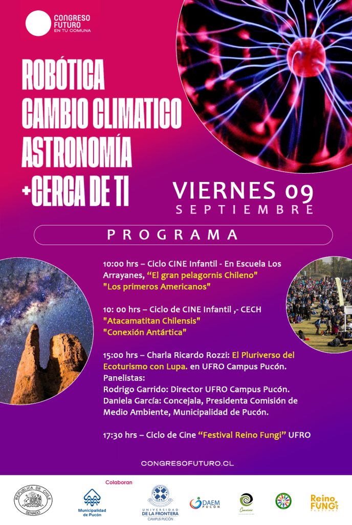 Ya está todo listo para que este jueves comience en Pucón, el “Congreso Futuro en tu Comuna”, que está organizando el Senado de la República en conjunto con el Municipio de lacustre y la Universidad de la Frontera, sede Pucón.