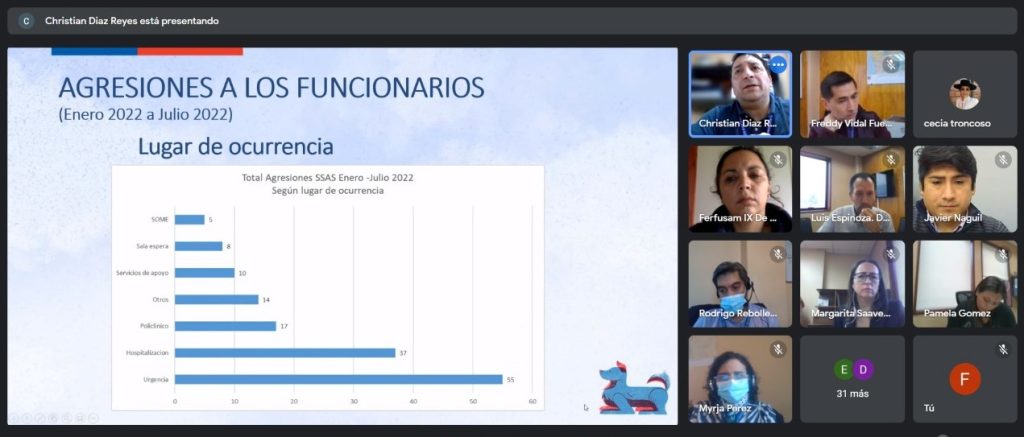Con el objetivo de continuar las coordinaciones para la prevención y la acción a partir de los 151 casos de agresión a funcionarios de salud registrados entre enero y julio, se realizó una nueva reunión de la Mesa de Seguridad del Servicio de Salud Araucanía Sur.