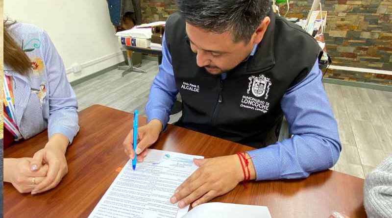 En dependencias de la oficina alcaldicia municipal, la primera autoridad comunal Alexis Pineda Ruiz junto a la SECPLAN Evelyn Mora, DIDECO Susana Solis, firmó el contrato de la nueva oficina municipal de asistencia legal para saneamiento en los sectores de La Paz, Huiscapi y Loncoche urbano.