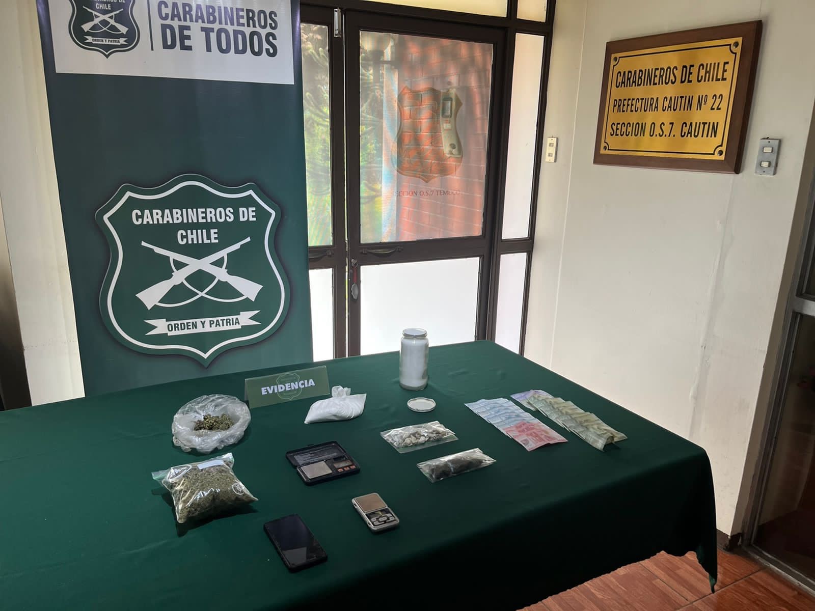 El Mayor Rodolfo Moller, Jefe del OS-7 “Araucanía” confirmó que el detenido “usaba como fachada un local de comida rápida para la posterior venta de droga” y que “se pudo incautar aproximadamente 2.800 dosis de droga entre marihuana y clorhidrato de cocaína”, evitando un enriquecimiento ilícito del imputado cercano a los $14.000.000.
