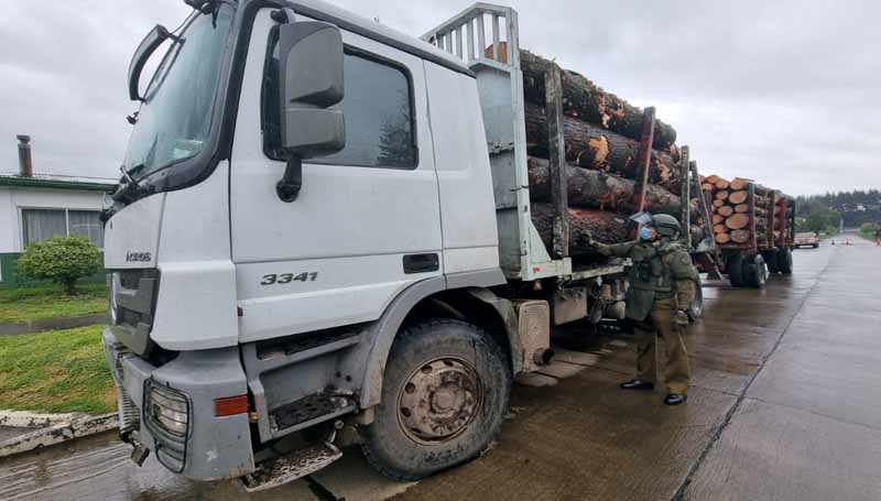 Carabineros que realizaban servicios preventivos carreteros fueron alertados por la Cenco Cautín sobre la presencia del vehículo de carga denunciado por la empresa forestal afectada, el que se trasladaba sin sus placas patentes a la vista, por lo cual, procedieron a interceptarlo e intimar al conductor a detener la marcha.