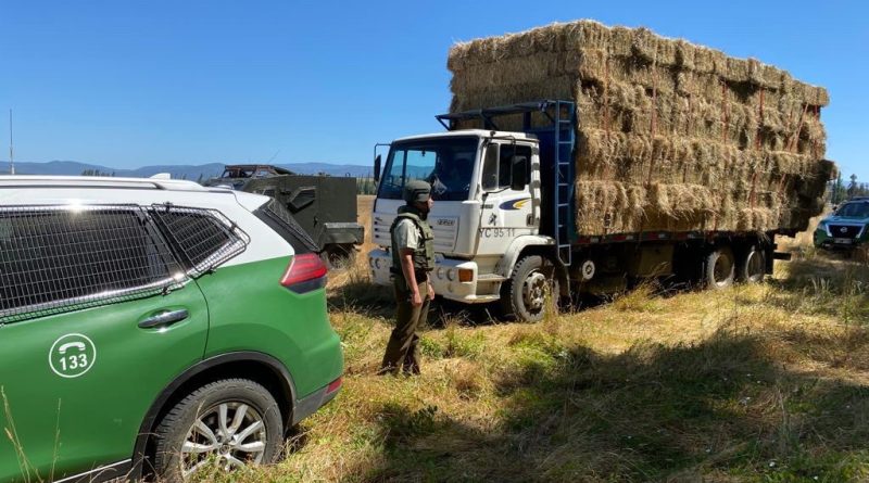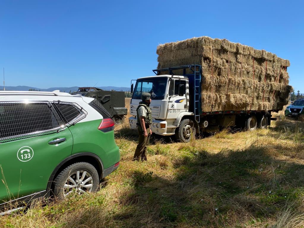 Araucanía: Carabineros sorprende a sujetos robando fardos de pasto en fundo con medidas de protección, dos personas detenidas