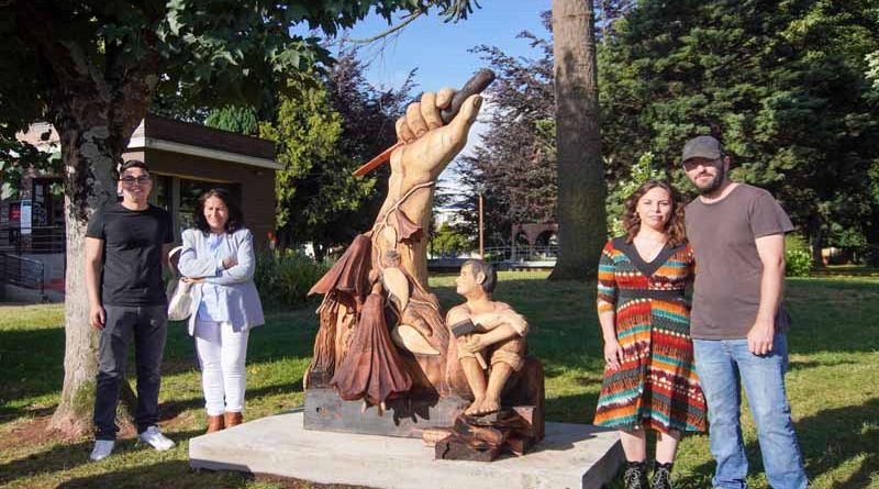 Proyecto Tradición de Talladores inaugura la primera escultura en madera de la comuna de Loncoche