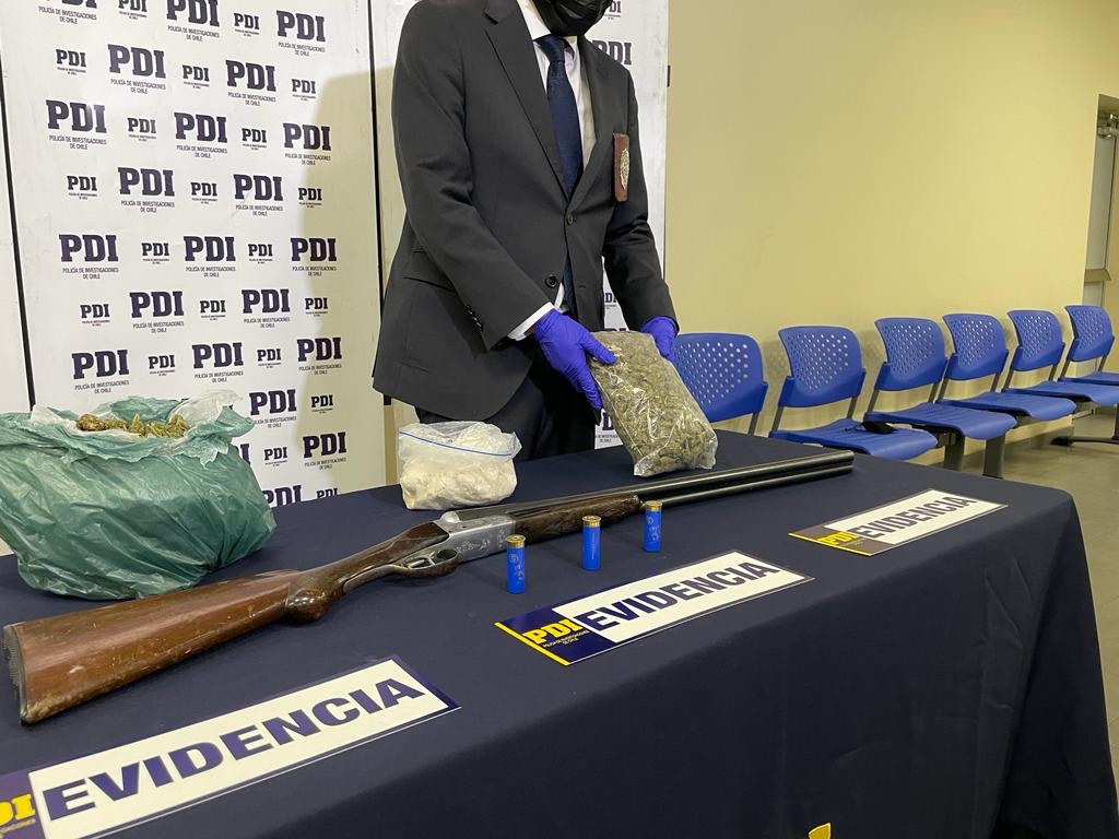 En el operativo, desarrollado en el sector de Labranza, la PDI incautó más de un kilo de cocaína base (equivalente a 3 mil dosis), casi un kilo y medio de cannabis sativa (equivalente a 2.800 dosis), además de una escopeta con dos cañones y tres cartuchos calibre 16 y dos automóviles, utilizados para el transporte de la droga.