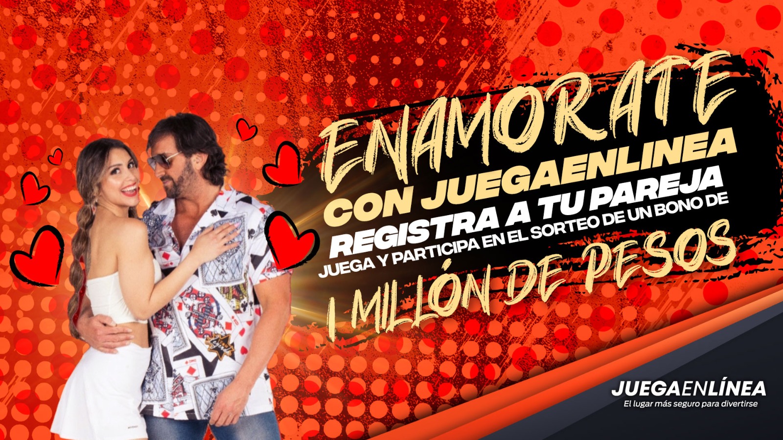 Pero eso no es todo, ya que con sólo participar tendrás un importante beneficio. Para ser parte de esta tremenda iniciativa, una vez inscrito, debes registrar a tu pareja o amigo (a) en el siguiente link, en la sección “registrarse” para luego ingresar el código ENAMORADOS y obtener 10 mil pesos en Free Bets y 25 Free Spins que puedes utilizar en Juegaenlínea.com. Esta promoción es válida entre el 23 de enero y 13 febrero de 2023, mientras que el gran sorteo se realizará el próximo martes 14 febrero 2023.