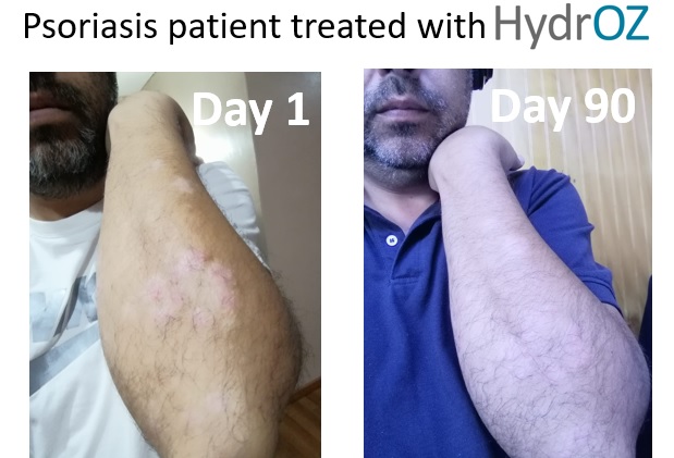 HydrOZ es el nombre de esta crema dermocosmética de aplicación corporal que fusiona ozono de grado médico y lo inmoviliza en aceites, con adición de un extracto de flora nativa chilena, para crear una solución tecnológica que aminora los síntomas de la psoriasis.
