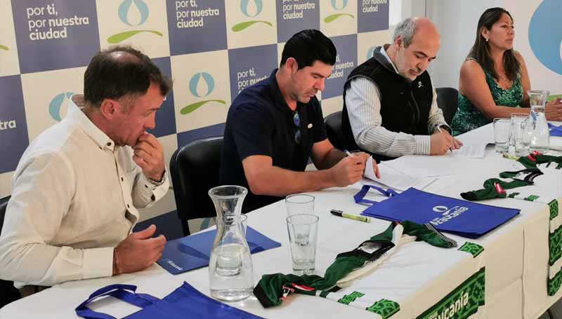 Con la presencia del presidente del Club, el destacado ex futbolista Marcelo Salas y el gerente regional de la sanitaria, José Torga fue sellada esta alianza que busca fomentar y desarrollar los nuevos talentos regionales.