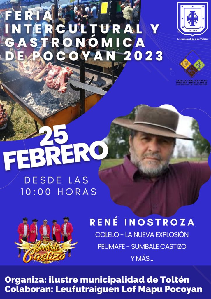 Con más de diez años de tradición en la cancha Copihue del sector Pocoyan, entrada norte de la comuna de Toltén, se realiza la nueva muestra intercultural y gastronómica de Pocoyan. En esta muestra de tradiciones campesinas 50 stand ofrecerán gastronomía típica de este territorio rural. Además, se presentan los destacados artistas Rene Inostroza, Colelo Identidad Mapuche, Peumefe y renacer y la Nueva Explosión entre otros.